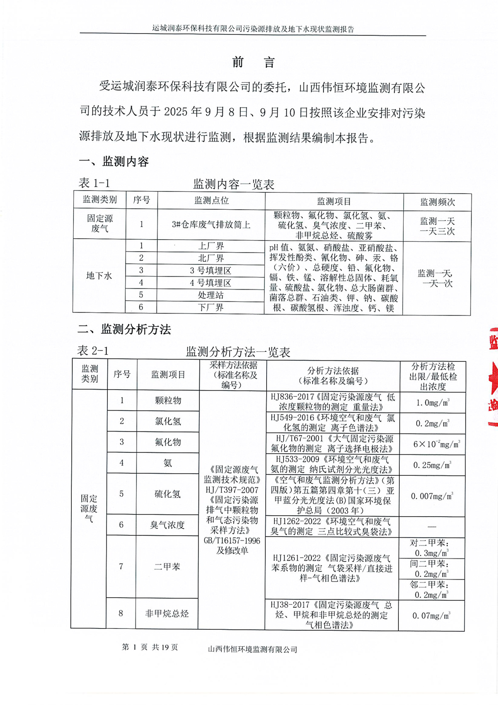 2025年潤(rùn)泰環(huán)保九月份自行監(jiān)測(cè)報(bào)告
